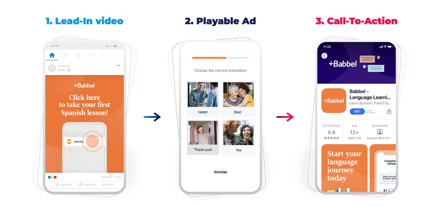 For example, popular language learning app Babbel developed a playable ad to promote its seven-day free trial and  drive subscriptions.