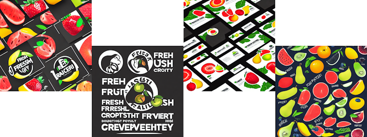 As you can see from the results above, Stable Diffusion struggles to create art involving words. And some of the fruit are a bit funky.