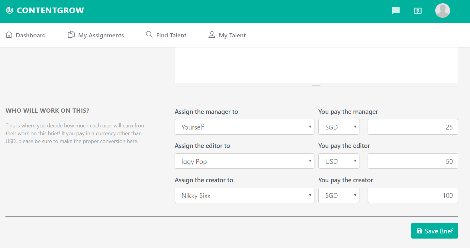 Additionally, because some publishers have contributors in several different countries that end up working together on the same briefs, we’ve now allowed for multiple currencies to be set on the same brief — depending on the role.