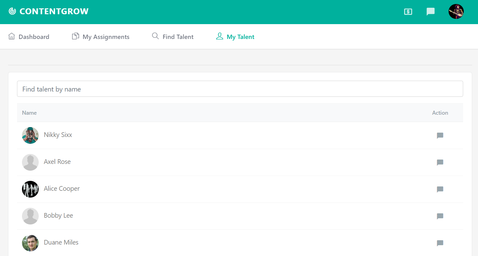 Find Talent is the area in the platform where you can add contributors from our user base to your company. From there, they get deposited into your My Talent area. Once you have a user in My Talent, they can easily be invited into any individual project you start.