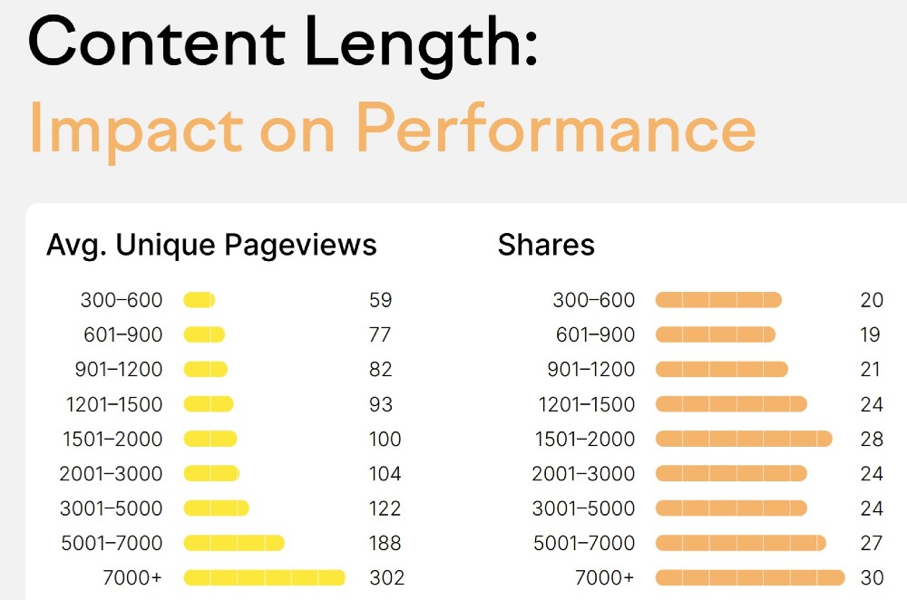A 2020 SEMrush report found that 7,000-word articles generate almost 5x more pageviews than those with less than 600 words.